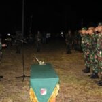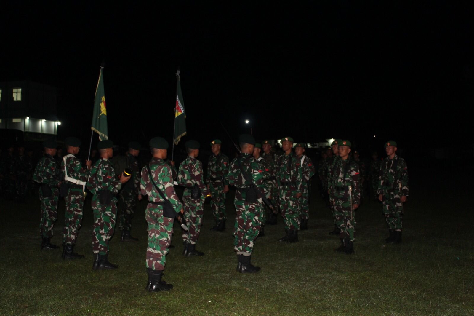 Bitung – Bupati Minahasa Utara Joune J. E. Ganda, S.E.,MAP., M.M., M.Si., memimpin upacara serah terima simbol gerak jalan Peleton Beranting Yudha Wastu Pramuka Jaya (YWPJ) Tahun 2025, bertempat di Lapangan Bola Kompi C Yonzipur 19/YKN Kel. Sukur Kec. Airmadidi Kabupaten Minahasa Utara, sekitar Pukul 04.05 Wita, Kamis, (18/12/2025).
