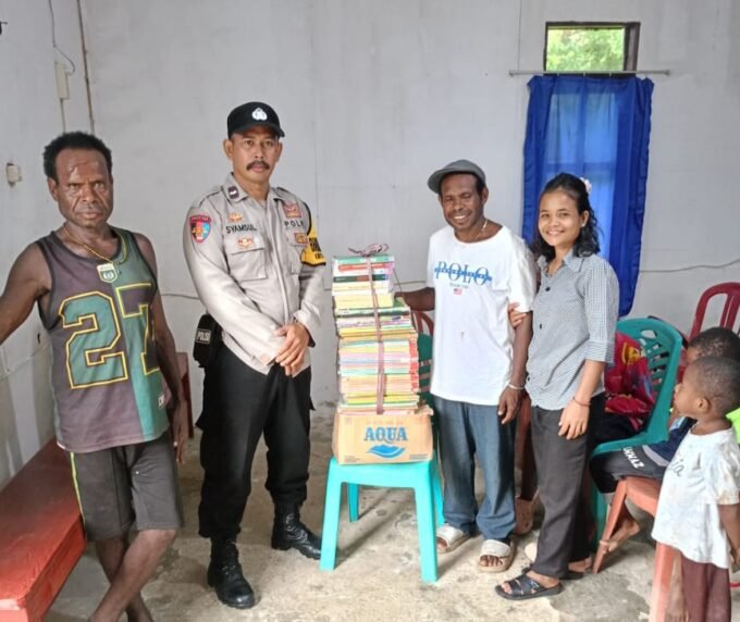 Bhabinkamtibmas Kampung Wamena Salurkan Bantuan Buku dan Dukung Pemberantasan Buta Aksara di Kabupaten Kaimana