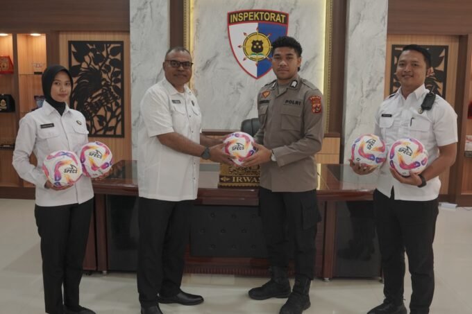 Atlet Nasional dan Personel Polda Papua, Evan Soumilena Dukung Turnamen Sepak Bola Antar Satker dengan Bantuan Bola