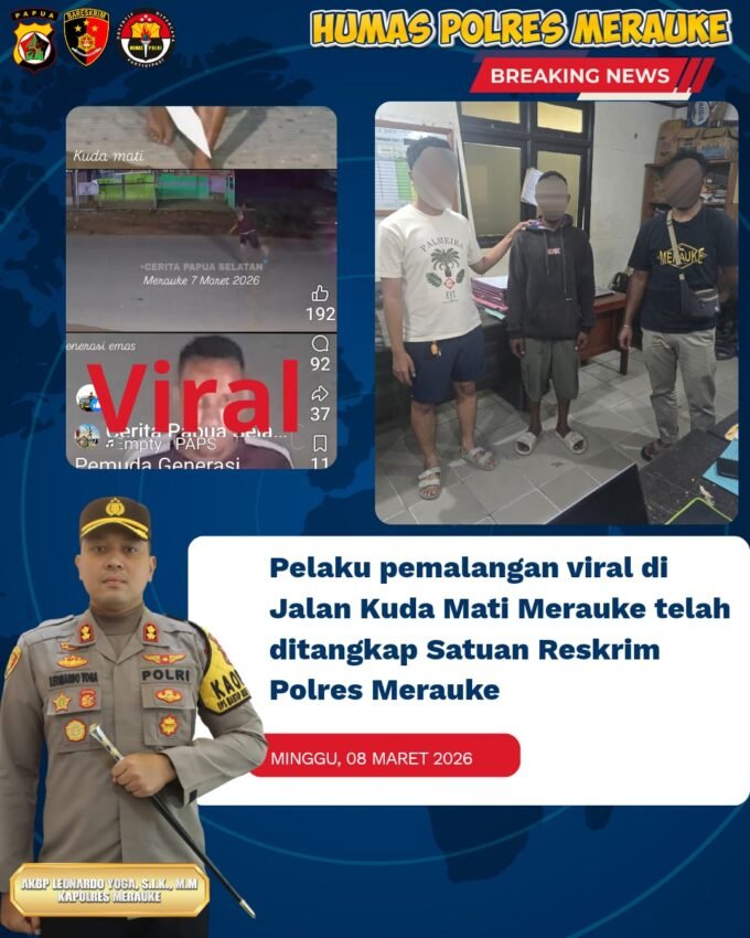 Satreskrim Polres Merauke Amankan Pelaku Pemalangan Jalan yang Viral di Jalan Kuda Mati