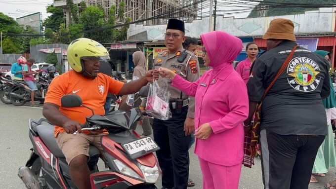 Bersama Ojol Raih Rajut Persaudaraan, Satlantas Polresta Jayapura Kota Bagikan Takjil