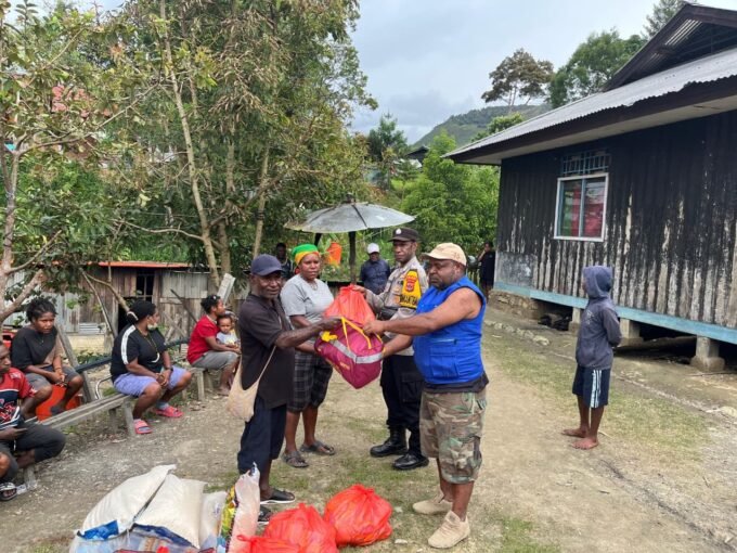 Polres Tolikara dan Dinsos Salurkan Bantuan Sembako bagi Korban Kebakaran di Karubaga