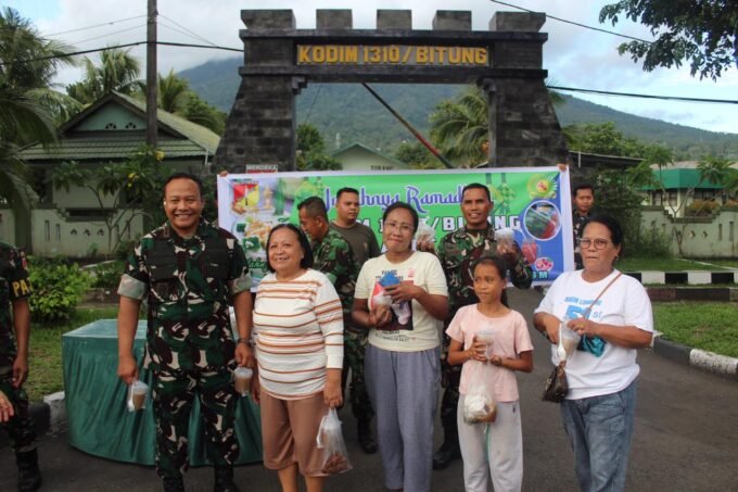 Wujud Kepedulian dan Kebersamaan di Bulan Ramadhan, Dandim 1310/Bitung bersama Anggota dan Persit Kodim 1310/Bitung Berbagi Takjil di Depan Makodim