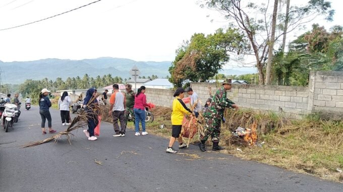 Koramil 1310-05/Kauditan Gelar Karya Bakti Gerakan Indonesia Asri Bersihkan Poros Jalan Tontalete