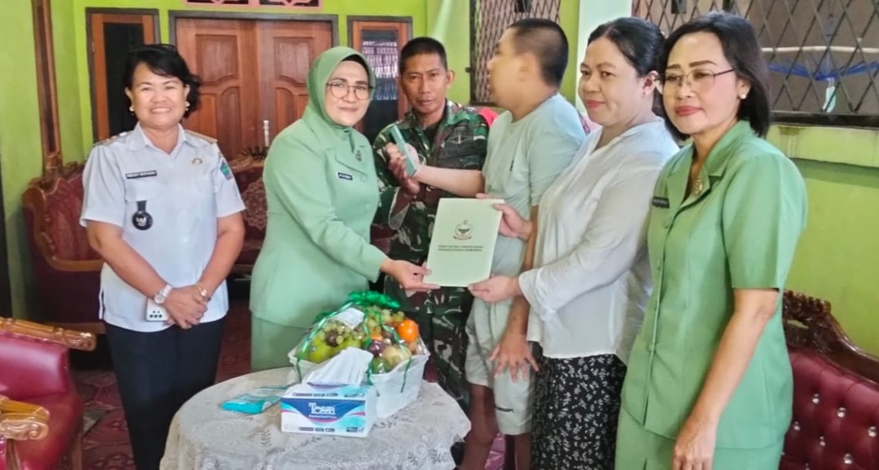 Ketua Persit KCK Daerah XIII/Merdeka Ny. Lely Mirza Agus, saat melakukan anjangsana didampingi Danramil 1310-06/Airmadidi Kapten Inf Fredrik Liwutang bersama Ibu-Ibu Pengurus Persit KCK Koorcab Korem 131/Stg, Ibu-Ibu Pengurus Persit KCK Cabang LXII Kodim 1310/Bitung dan Personel Kodim 1310/Bitung. Kegiatan yang berlangsung penuh kehangatan ini merupakan wujud nyata kepedulian dan perhatian Persit KCK Daerah XIII/Merdeka, sekaligus pemberian tali asih kepada anak-anak yang memiliki kebutuhan khusus (disabilitas).