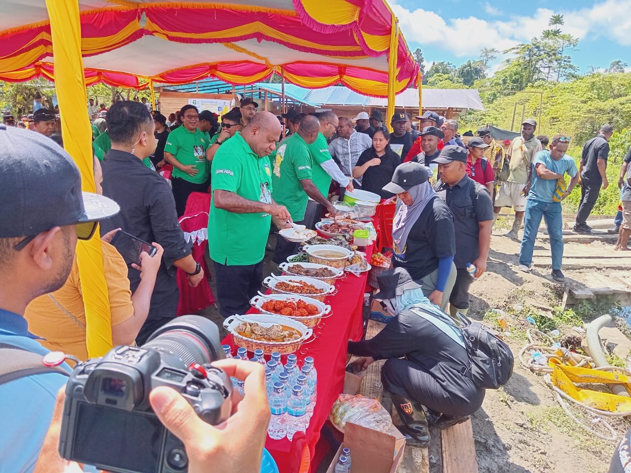 Kegiatan tersebut turut dihadiri oleh Bupati Sarmi Dominggus Catue, S.K.M., M.Kes., Wakil Bupati Sarmi Hj. Jumriati, S.H., jajaran Organisasi Perangkat Daerah (OPD) Provinsi Papua dan Kabupaten Sarmi, unsur Forkopimda, Kapolsek Bonggo IPTU Yustus Maudul, S.E., M.Si., para kepala distrik, tokoh adat, tokoh agama, serta tamu undangan lainnya.
