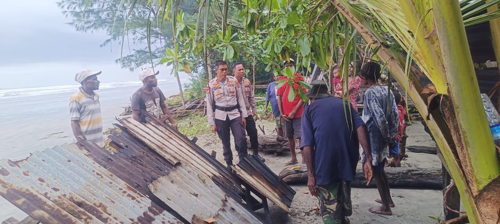 Kasat Polairud Polres Sarmi Tinjau Warga Terdampak Gelombang Tinggi di Pesisir Basecamp