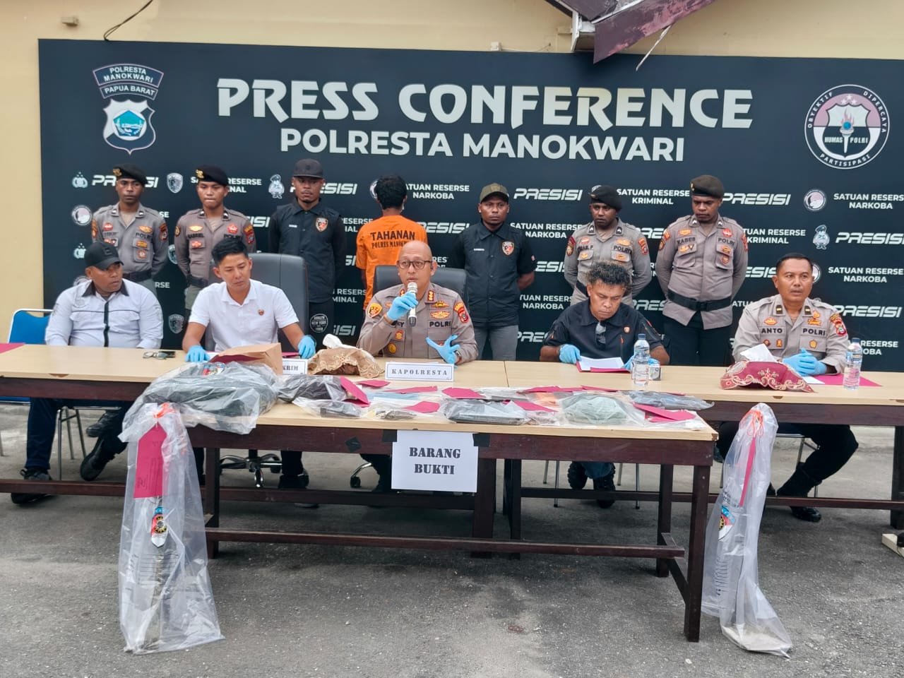 Kapolresta Manokwari Kombes Pol Ongky Isgunawan, SIK menjelaskan kronologi kasus ini dalam konferensi pers di Mapolresta Manokwari, Rabu (12/11/2025).