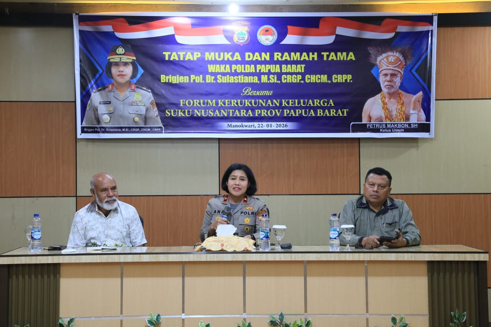‎Kegiatan tersebut dipimpin langsung oleh Wakapolda Papua Barat Brigjen Pol. Dr. Sulastiana, M.Si., GRGP., CHCM., CRPP., didampingi Direktur Intelkam Polda Papua Barat Kombes Pol. Sigit Hariyadi, S.I.K., M.H., Direktur Binmas Polda Papua Barat Kombes Pol. Hari S. Sembiring, S.I.K., serta dihadiri oleh para kepala suku dan perwakilan paguyuban suku Nusantara yang berada di wilayah Papua Barat.