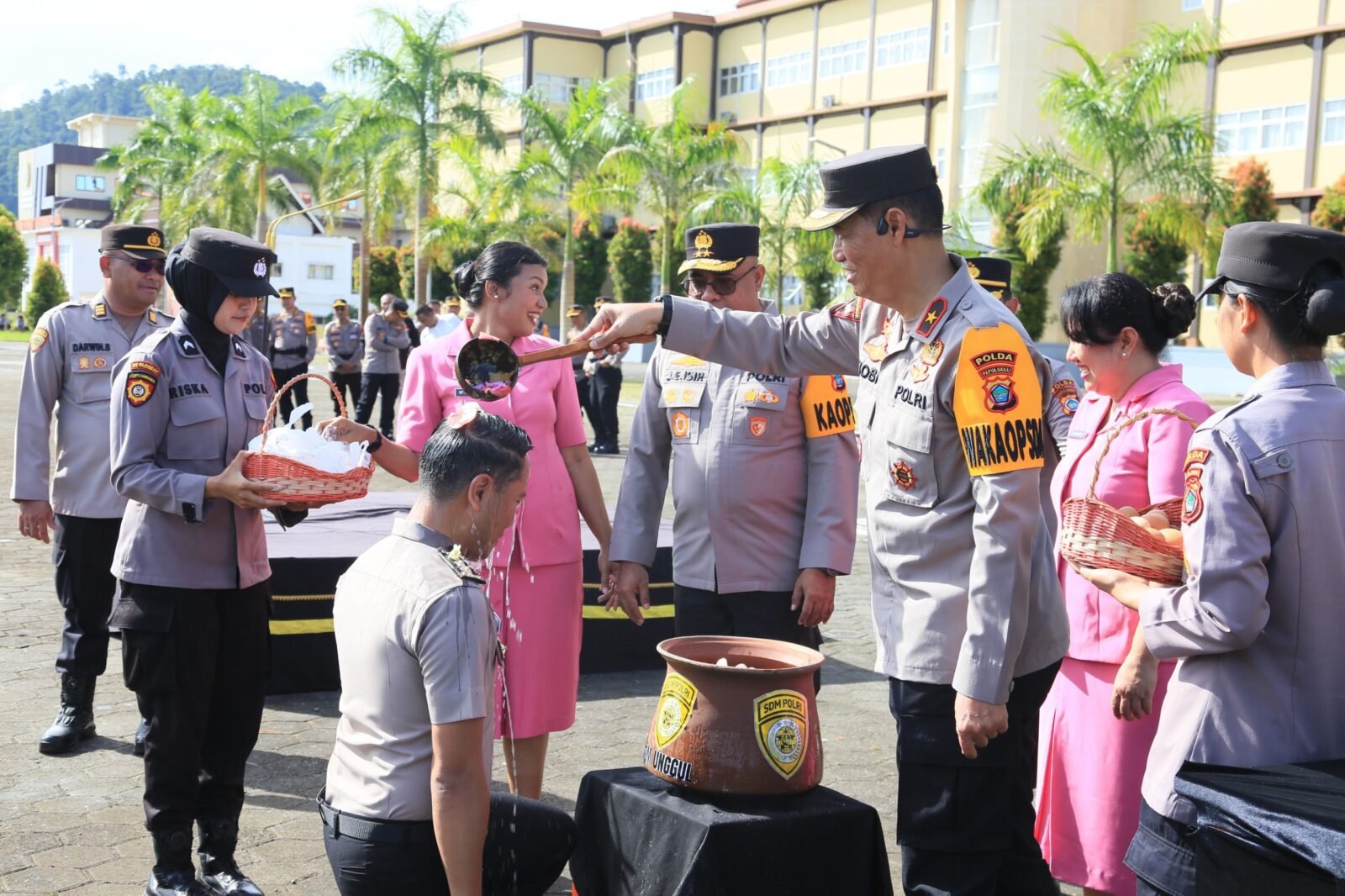 Upacara kenaikan pangkat tersebut dipimpin langsung oleh Kapolda Papua Barat Irjen Pol. Johnny Eddizon Isir, S.I.K., M.T.C.P. selaku Inspektur Upacara, dan dihadiri oleh Wakapolda Papua Barat, para Pejabat Utama Polda Papua Barat, Ketua, Wakil Ketua serta Pengurus Bhayangkari, serta seluruh personel yang menerima kenaikan pangkat.