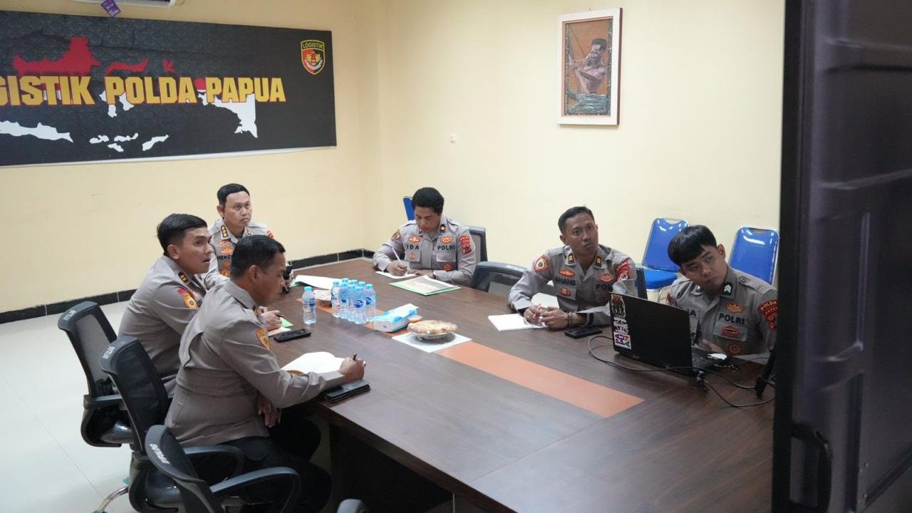 Papua – Kepolisian Daerah Papua mengikuti Rapat Analisa dan Evaluasi (Anev) serta Koordinasi Ketahanan Pangan Tahun 2026 yang dilaksanakan secara virtual melalui Zoom Meeting, bertempat di Ruang Video Conference (Vicon) Biro Logistik Polda Papua, Senin (12/1/2025).