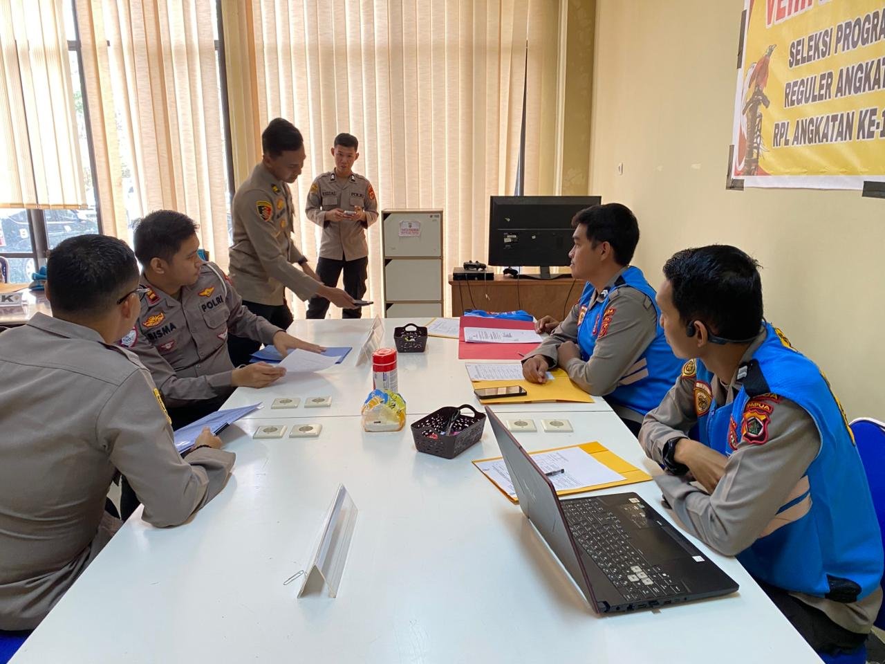 Kegiatan dimulai dengan kehadiran panitia dan para peserta yang memasuki ruangan pelayanan Biro SDM Polda Papua untuk mengikuti tahapan verifikasi. Selanjutnya, para peserta melakukan pengecekan kehadiran serta pengisian administrasi sebagai bagian dari proses awal sebelum memasuki tahapan pemeriksaan komponen seleksi.