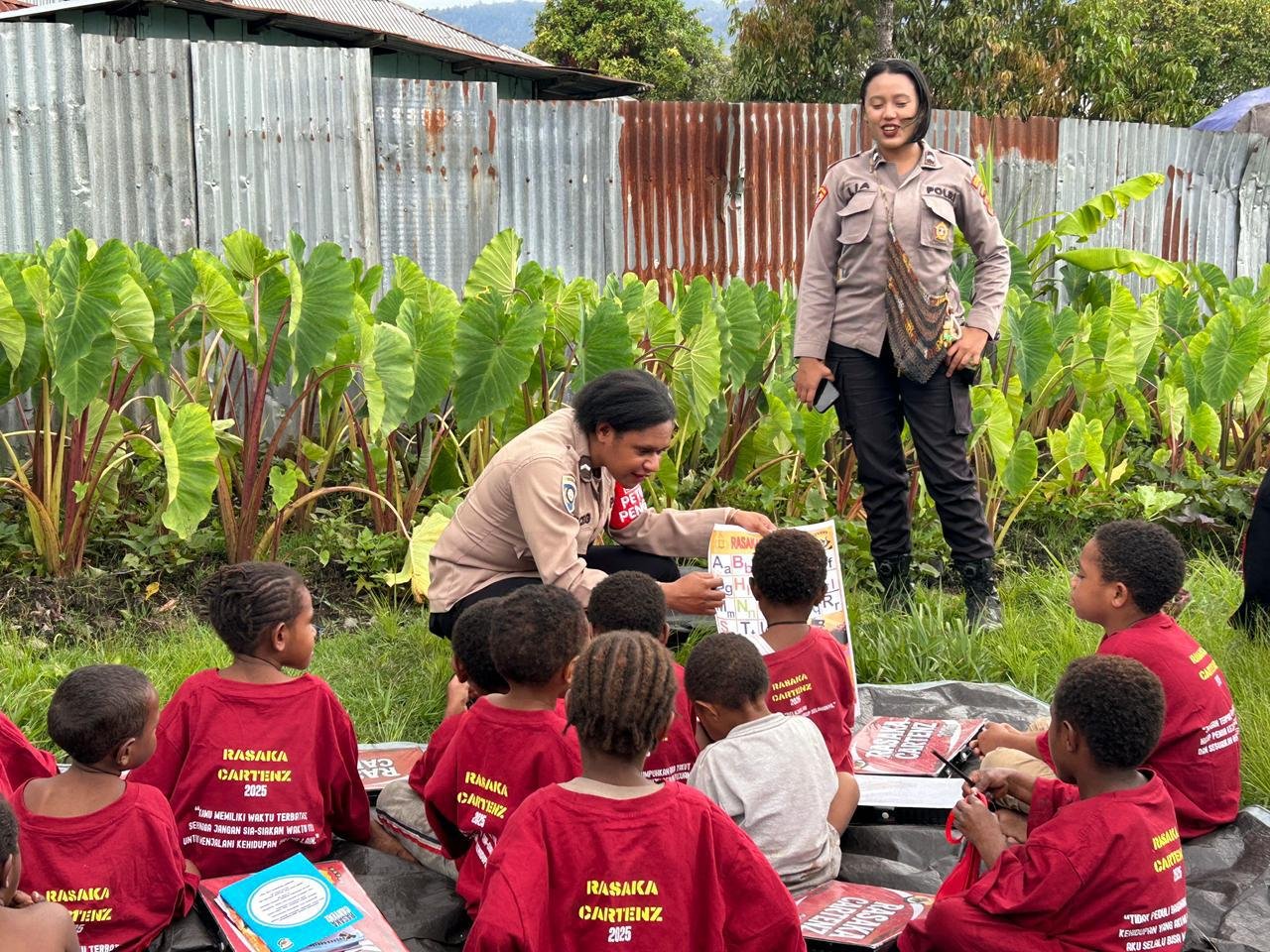 Wamena, Jayawijaya – Satuan Tugas Operasi Rasaka Cartenz 2025 melalui Subsatgas SI IPAR (Polisi Pi Ajar) kembali melaksanakan kegiatan pembelajaran bagi anak-anak di wilayah Kabupaten Jayawijaya. Kegiatan kali ini berlangsung di halaman rumah Bapak Fredi Wenda di Jalan Bhayangkara, Distrik Wamena, Jumat, (28/11) Pagi.