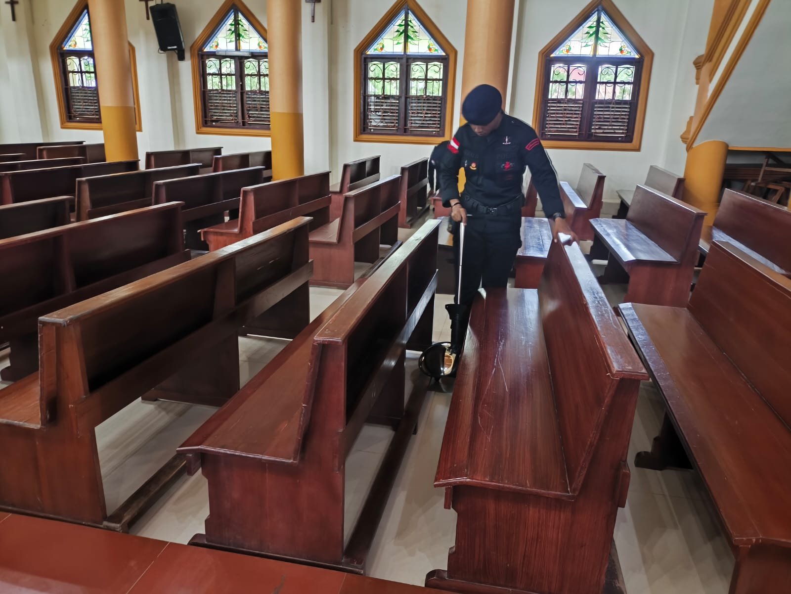 Sterilisasi dipimpin oleh Ipda Hamdani Hafid selaku Ketua Tim dengan melibatkan 10 personel Jihandak. Tim melakukan penyisiran secara menyeluruh pada area dalam dan luar gereja guna memastikan tidak adanya benda berbahaya atau mencurigakan.