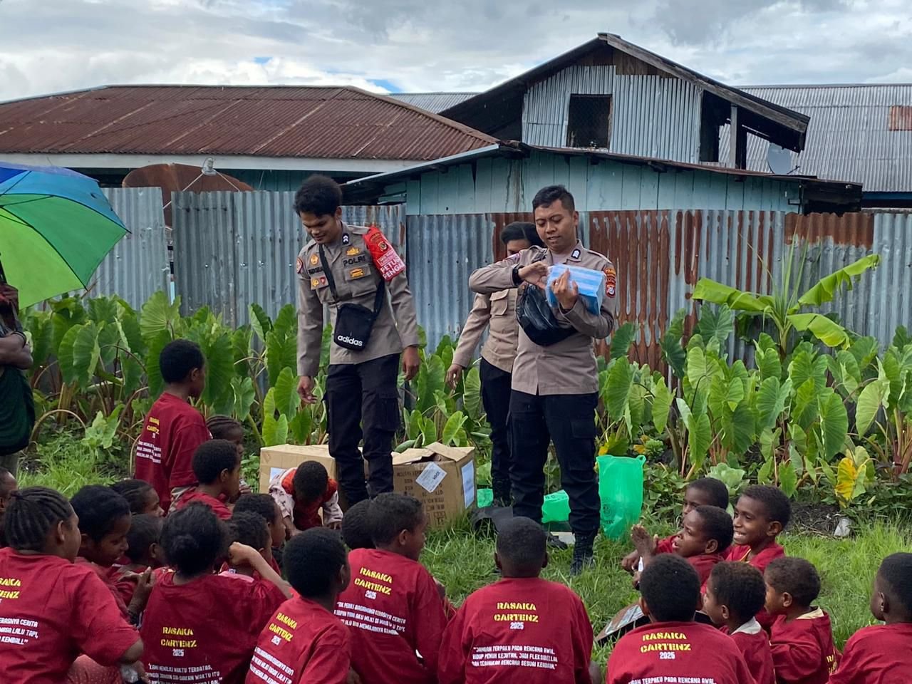 Wamena – Satuan Tugas Rasaka Cartenz 2025 melalui Subsatgas Si Ipar (Polisi Pi Ajar) Polres Jayawijaya kembali melaksanakan kegiatan pembelajaran dan pendampingan untuk anak-anak di wilayah Wamena. Kegiatan berlangsung di halaman rumah Bapak Fredi Wenda, yang berlokasi di Jalan Bhayangkara, Kecamatan Wamena, Kabupaten Jayawijaya, dan diikuti puluhan anak setempat dengan penuh antusias. Kamis, (27/11) Pagi.
