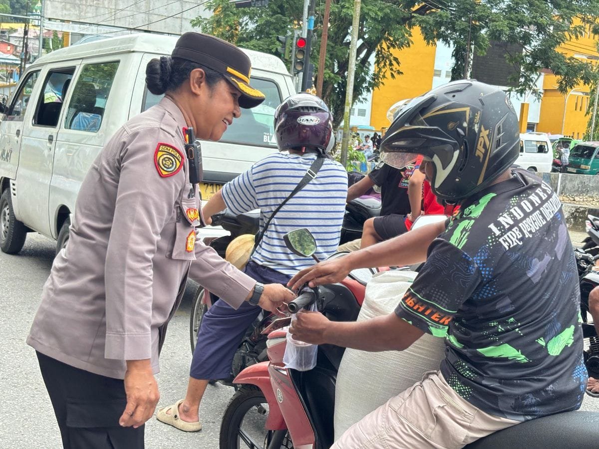 ​Kegiatan yang dipimpin langsung oleh Waka Polres Fakfak, Kompol Henderjetha H. Yassu, S.H., ini berlangsung dengan penuh kehangatan. Mengenakan seragam lengkap dengan senyum ramah, para srikandi Polri ini menyapa satu per satu pengendara, mulai dari sopir angkutan umum, tukang ojek, hingga pejalan kaki yang sedang dalam perjalanan pulang menuju rumah.