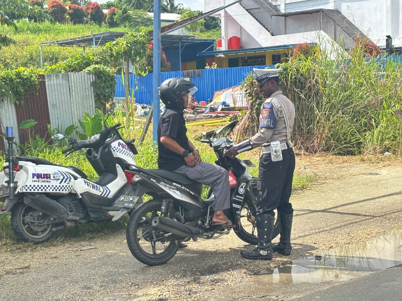 Petugas memberikan edukasi tertib berlalu lintas, seperti kewajiban memakai helm SNI, memastikan kelengkapan surat kendaraan, penggunaan spion, serta selalu mengutamakan keselamatan saat berkendara. Pengendara yang melanggar diberikan pembinaan agar lebih disiplin di jalan.