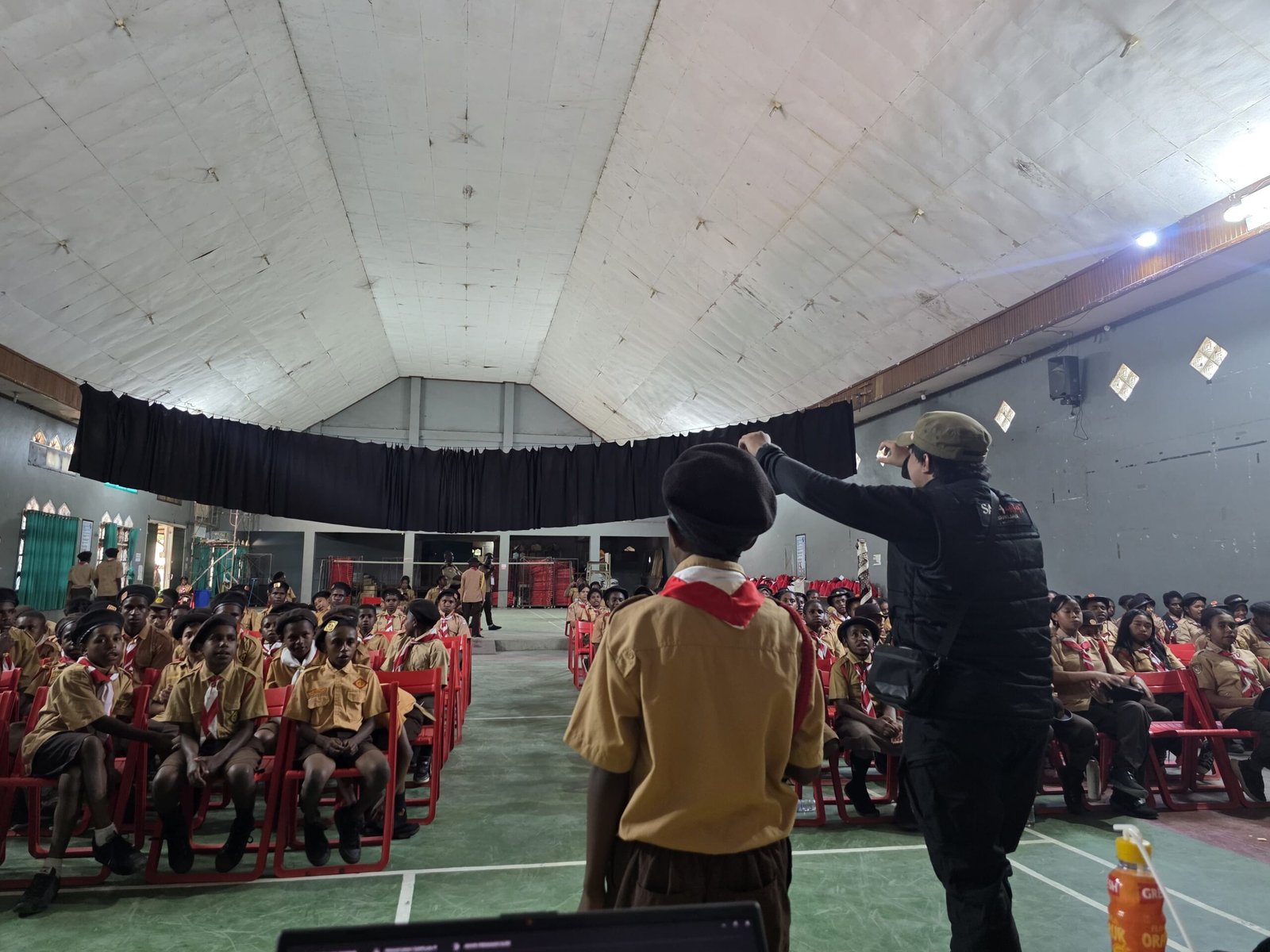 Wamena – Upaya pencegahan dini terhadap penyalahgunaan narkoba terus dilakukan Polres Jayawijaya, Selasa (2/12/2025), pagi. Satuan Reserse Narkoba Polres Jayawijaya melaksanakan kegiatan penyuluhan dan sosialisasi kepada siswa-siswi Gerakan Pramuka Kwartir Cabang Jayawijaya di Gedung Bazda, Jalan Yos Sudarso, Wamena.