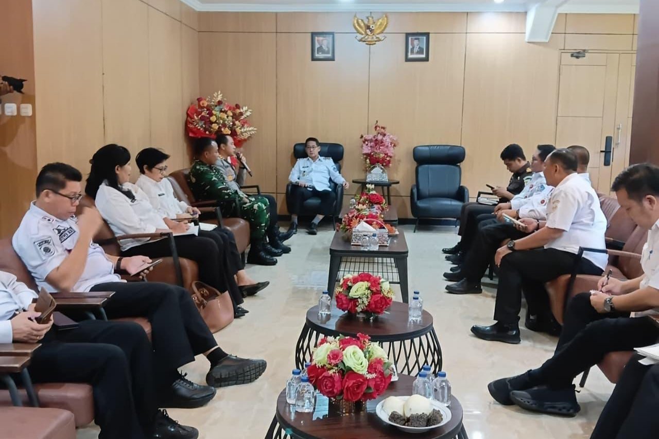 Kegiatan Rapat Koordinasi dipimpin langsung oleh Walikota Bitung, Bpk. Hengky Honandar, S.E. dan dihadiri Dandim 1310/Bitung, Letkol Inf Dewa Made DJ, Kapolres Bitung, AKBP Albert Zai, SIK, M.H., Kepala Kejaksaan Negeri Bitung diwakili Kasie Intelijen Kejari, Bpk. Justicy D. Wagiu, S.H., Sekda Kota Bitung, Bpk. Ir. Ignatius Rudy Theno, S.T, M.M., Asisten I Setda Kota Bitung, Bpk. Forsman Dandel, S.Sos., Kepala BPBD Kota Bitung, Ibu. Fivy Yurico Kadeke, Kepala BKAD Kota Bitung, Bpk. Franky Sondakh, Kadis Sosial, Ibu. Lady Ambat, S.Sos., Kasat Pol-PP, Bpk. Steven V. Suluh, SSTP, M.Si., Plt. Kaban Kesbangpol, Bpk. Agus Mamijo, S.E., dan Kabag Protokol Pemkot Bitung.