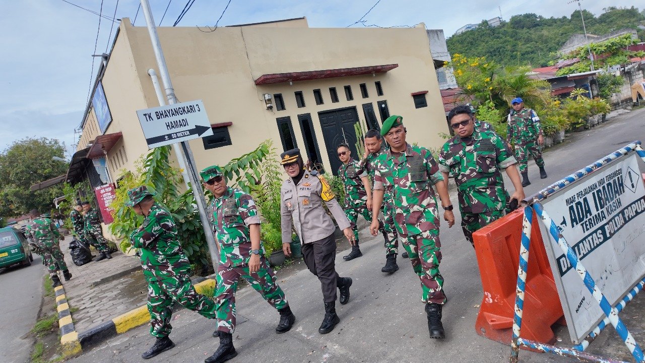 Papua – Sinergitas antara TNI-Polri kembali ditunjukkan melalui kegiatan Karya Bakti Pembersihan Pasar Hamadi di Jayapura, pada Jumat (12/12/2025). Kegiatan ini dilaksanakan dalam rangka menyambut Hari Juang TNI Angkatan Darat ke-80 dengan mengusung tema “TNI AD Menunggal dengan Rakyat Untuk Indonesia Bersatu, Berdaulat, Sejahtera dan Maju.”